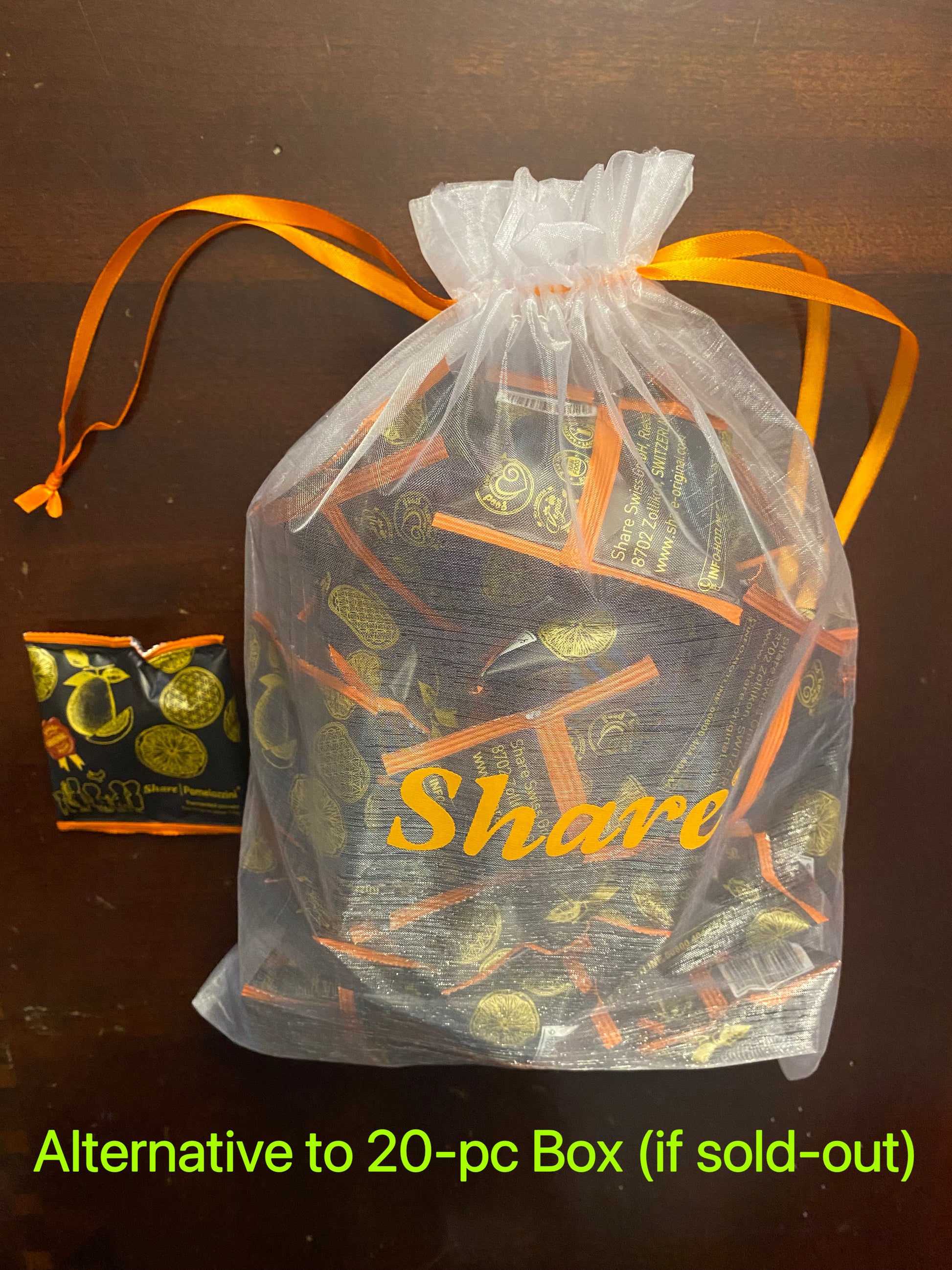 (3-Week Plan) Share Pomelozzini Fermented Pomelo 20-piece Organza Bag: 30+month Naturally Fermented w. Living Ingredients (Not Lab-Made), Vegan/Plant-Based; Lactose-Free; Individually Packaged for Travel (Made in Switzerland, Free Shipping)